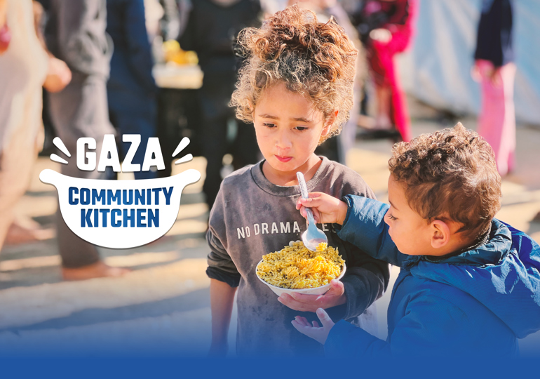 The Gaza Community Kitchen is a life-saving, locally operated initiative designed to bring fresh, hot meals to displaced families, widows, children, and the elderly across Gaza.